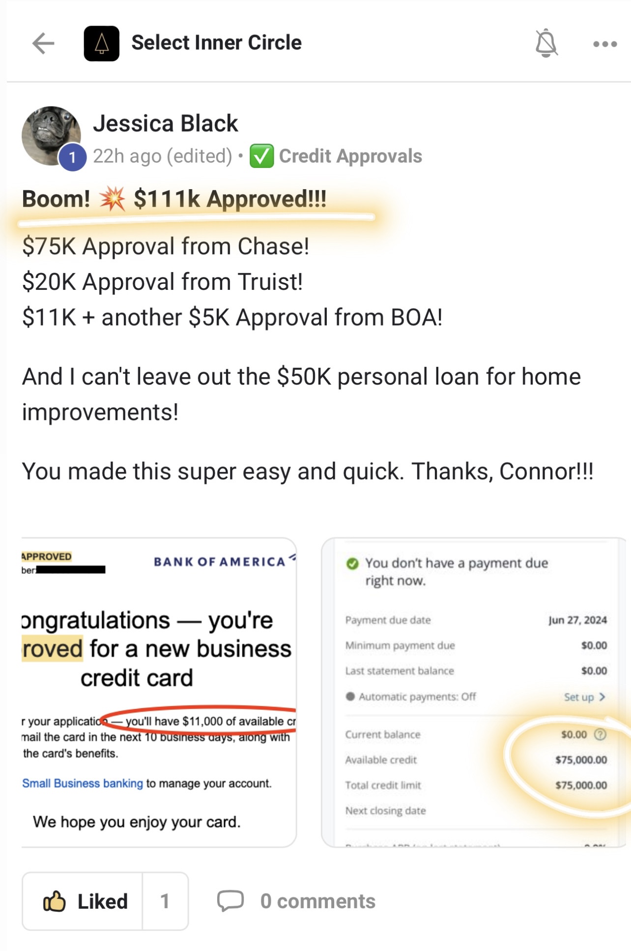 “I got burned by another company, spent $6,000, and wasted a year trying to build business credit with gas and store cards. With Connor, the process was straightforward, and he explained everything clearly. In less than a month, I secured $85,000 at 0% interest, and my credit score went from 670 to 735. I’m very happy I made this decision.”